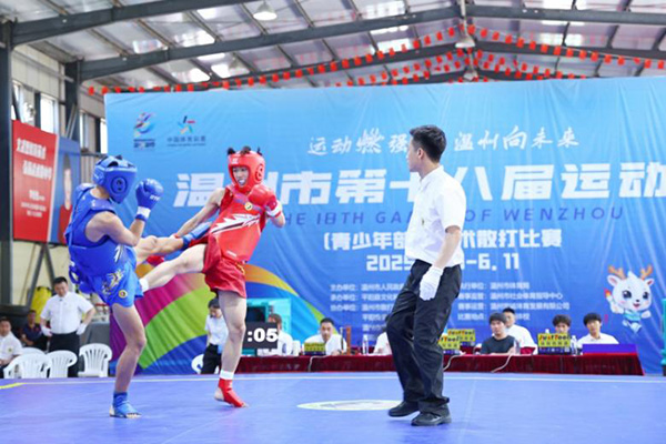 近日,温州市第十八届运动会(青少年部)武术散打比赛在平阳育英体校落幕。本次赛事由温州市人民政府主办、温州市体育局执行、平阳县文化和广电旅游体育局承办。