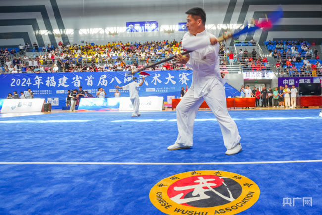 7月20日,2024年福建省首届八闽武术大赛在福建省福清市举行。来自福建各地的92支武术队伍共1600多名选手齐聚福清市体育馆,以武会友促交流。