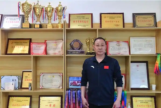 他表示,任教期间多次拜访武林前辈,本着多学、多问、多看的原则,合理安排科学训练,让所带的普通班晋升为学校的院队,获得全国级比赛冠军60余枚、省级冠军200余枚,自己的武术理论和训练技术也不断更新。